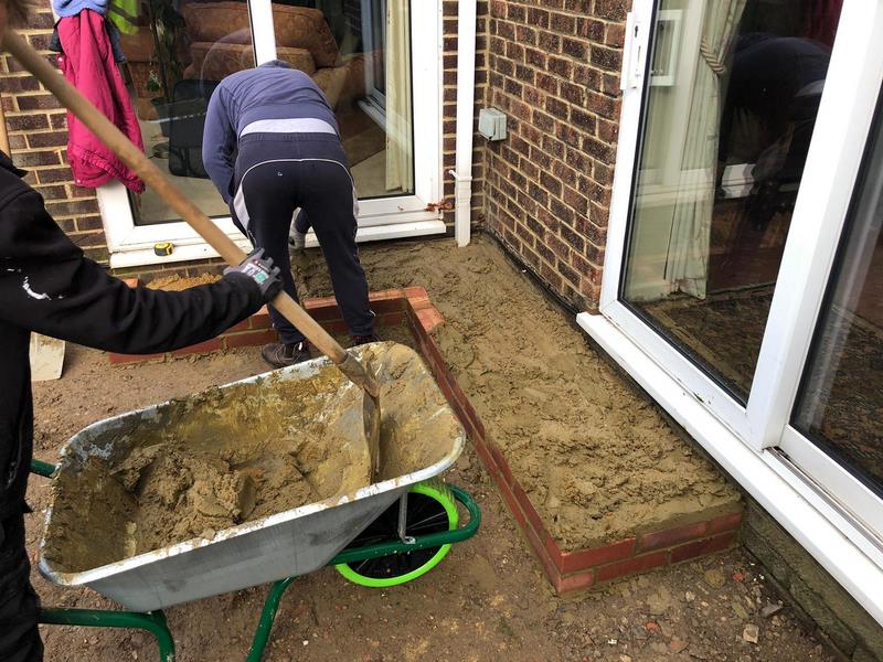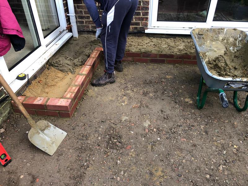 The project began with the removal of the old patio slabs and the excavation of the entire rear area and side pathway. This created a clear and level base ready for construction.