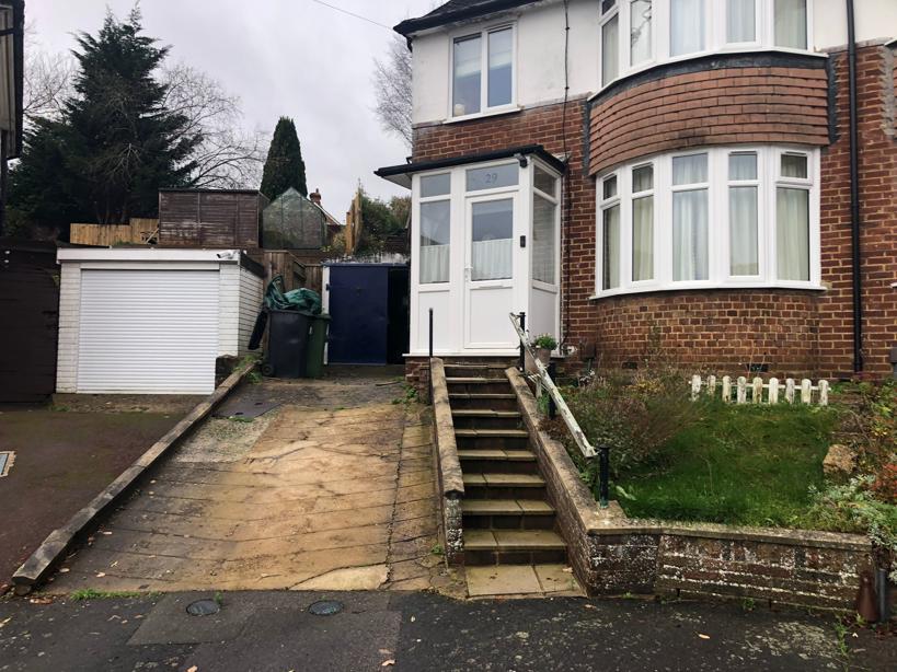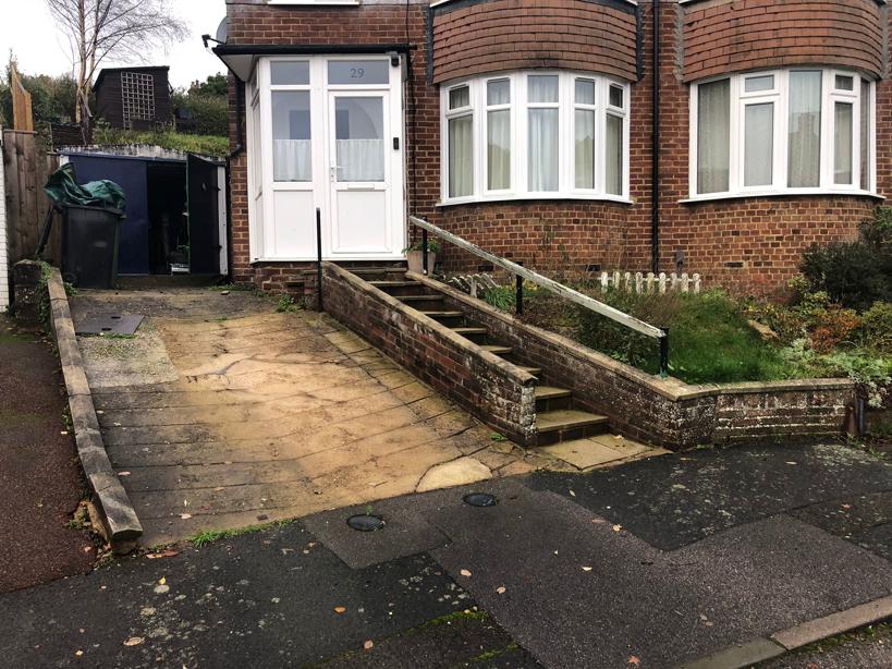 This project involved transforming a tired and uneven front driveway into a smart natural grey block paved driveway at a property in Tunbridge Wells. The original area consisted of worn concrete and sloping access that no longer provided a clean or practical parking solution. The homeowner wanted a modern, durable surface that improved access to the property while enhancing kerb appeal.