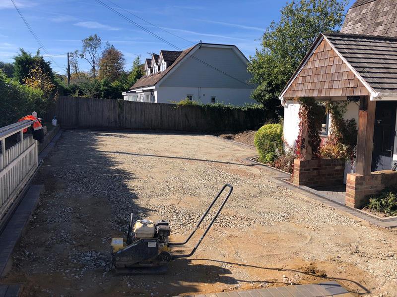 Sub-Base Installation: A new MOT Type 1 hardcore sub-base was laid across the entire area. This was then rolled and compacted with a machine roller to create a solid and stable foundation, which is crucial for the longevity of the new driveway.