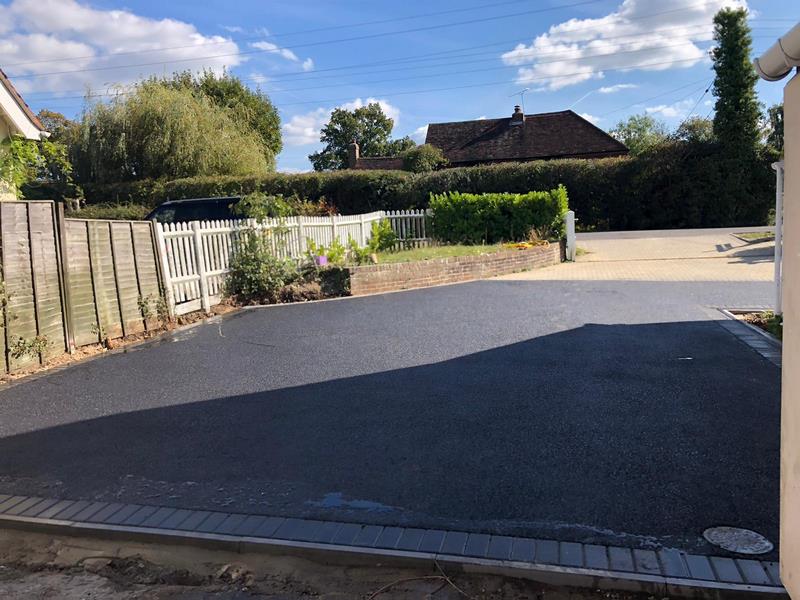This project in Biddenden has completely transformed the front of the property. The new tarmac driveway is a huge upgrade, offering a clean, smart, and low maintenance solution that adds significant value and kerb appeal. the contrasting block paved border and integrated drainage system are the perfect finishing touches to this high-quality installation.
